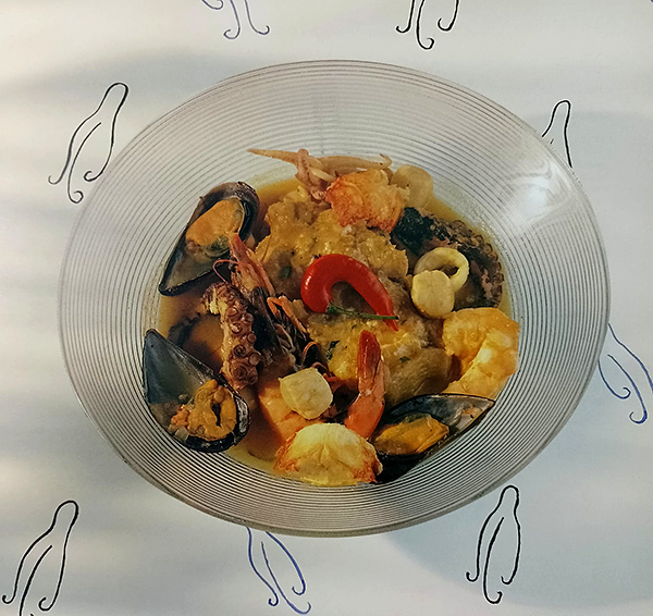 • Junte a páprica doce, as lulas e o polvo e cozinhe por 5 minutos. Adicione os camarões, as lagostas, as vieiras e o alho-poró picadinho.